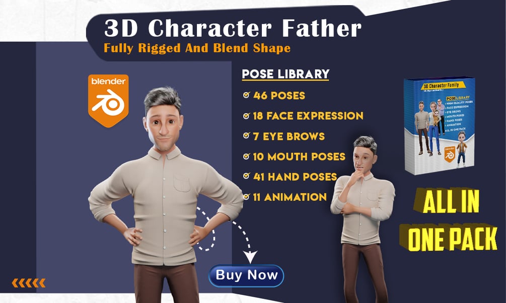 Pixar-style Father is a Blender Rigify control rig, ready to be animated.